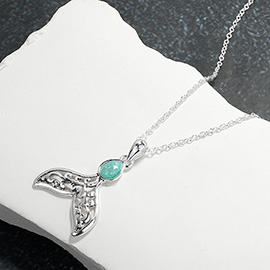 Stone Embellished Whale Tale Pendant Necklace