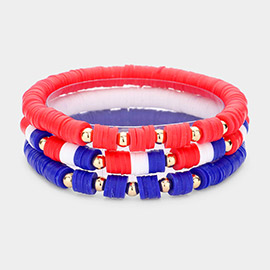 3PCS - Bow Charm Patriotic Beads Metal Ball Beaded Stretch Multi Layered Bracelets