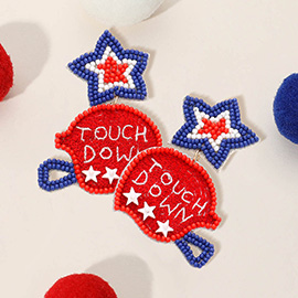 Felt Back American USA Flag Seed Beaded Star Touch Down Message Helmet Dangle Earrings