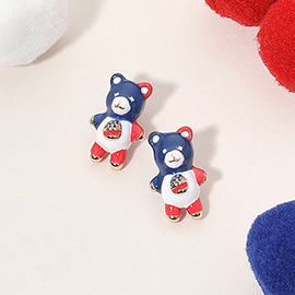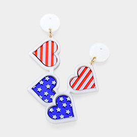 3Pairs - Enamel American USA Flag Heart USA Message Stud Earrings Set