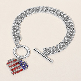 Stone Paved American USA Flag Charm Chunky Chain Toggle Bracelet
