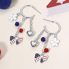 Enamel American USA Flag Western Boot Hat Heart Charm Dangle Hoop Earrings