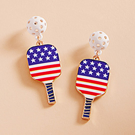 Stone Paved American USA Flag Accent Enamel USA Message Firework Dangle Earrings