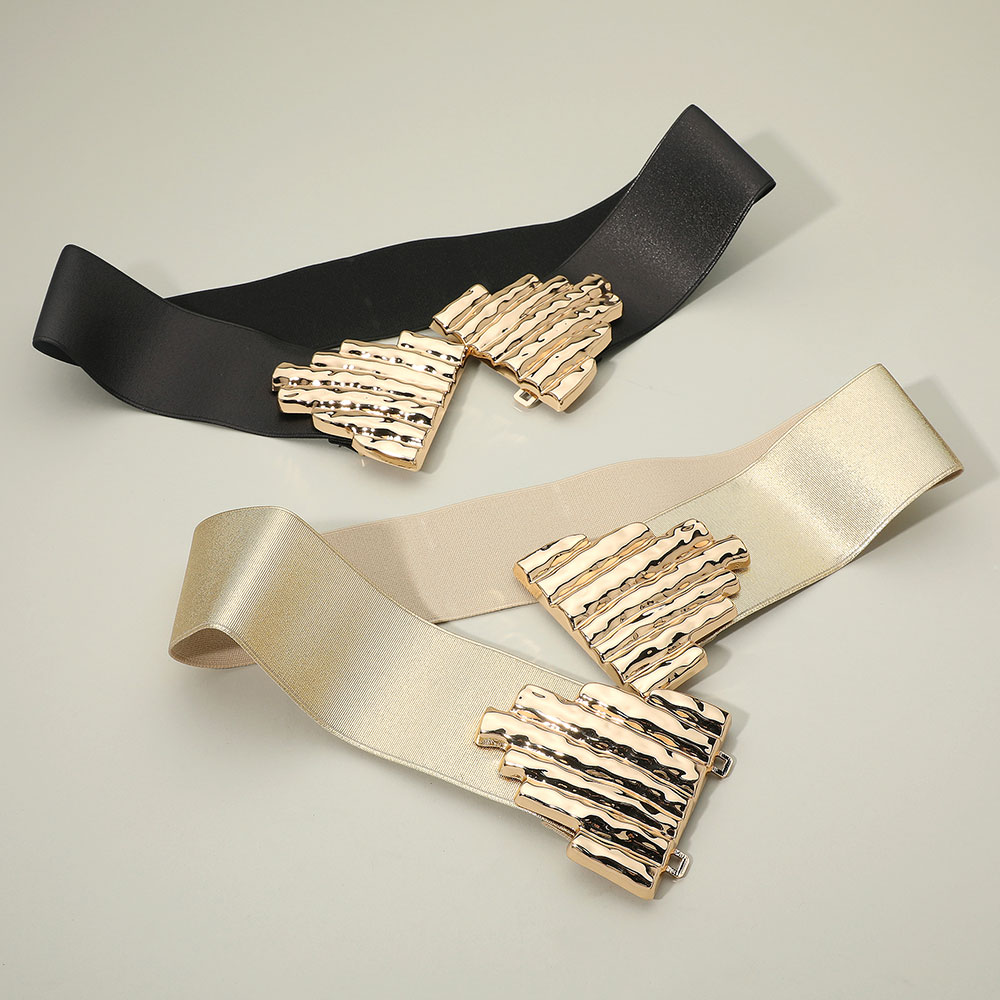 Abstract Textured Metal Buckle Pointed Elastic Waist Belt