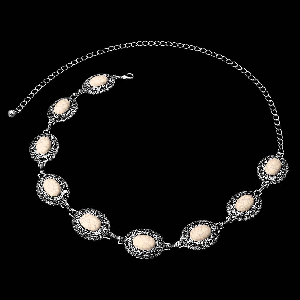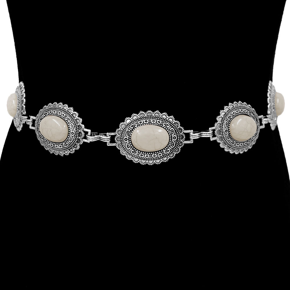 Boho Vintage Western Turquoise Stone Pointed Concho Chain Belt