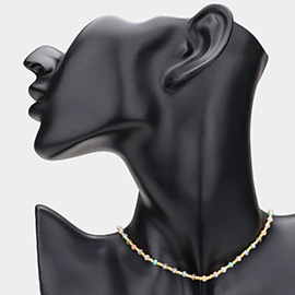 Wood Faceted Beaded Starfish Mermaid Oval Stone Pendant Necklace