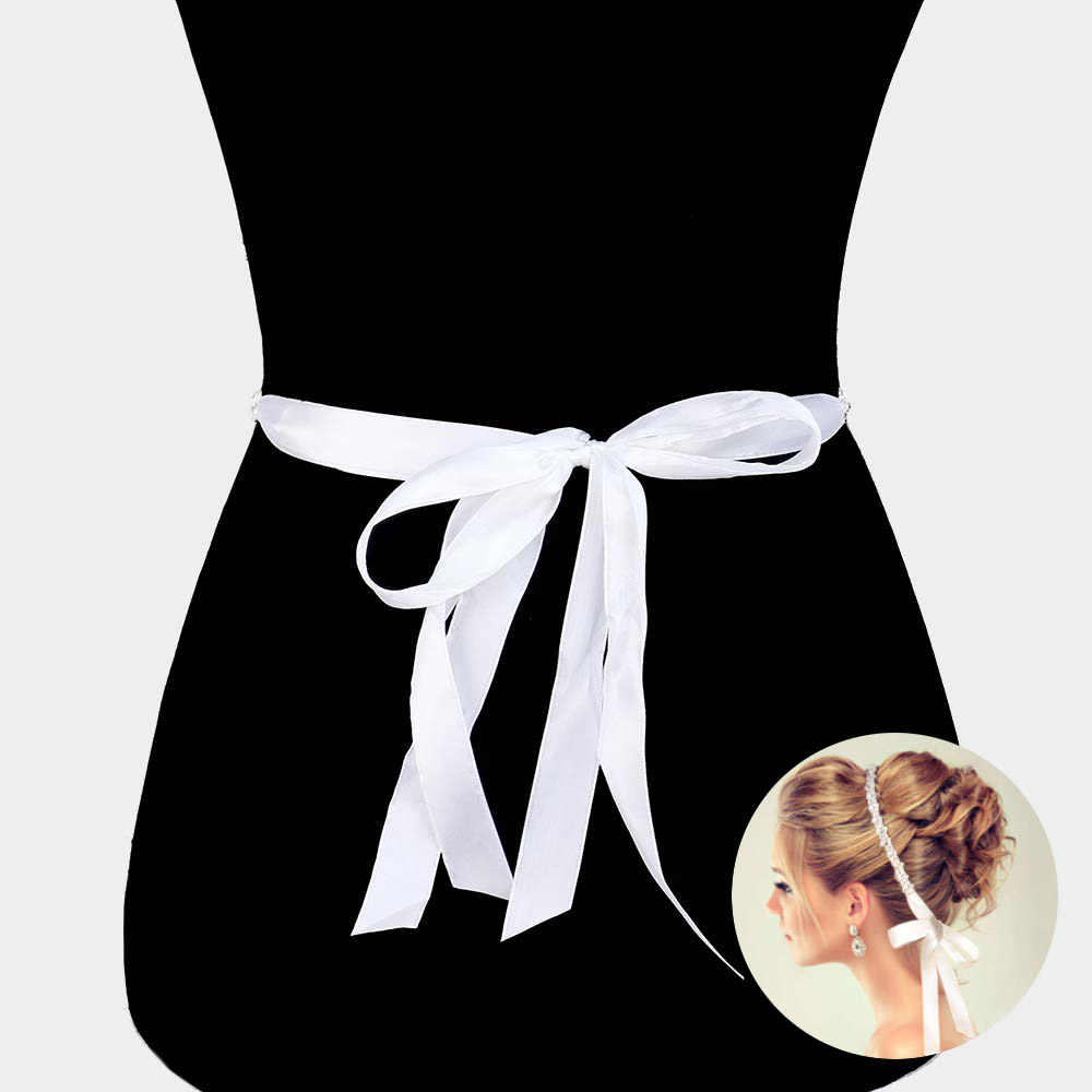 Floral Stone Cluster Accent Sash Ribbon Bridal Wedding Belt / Headband
