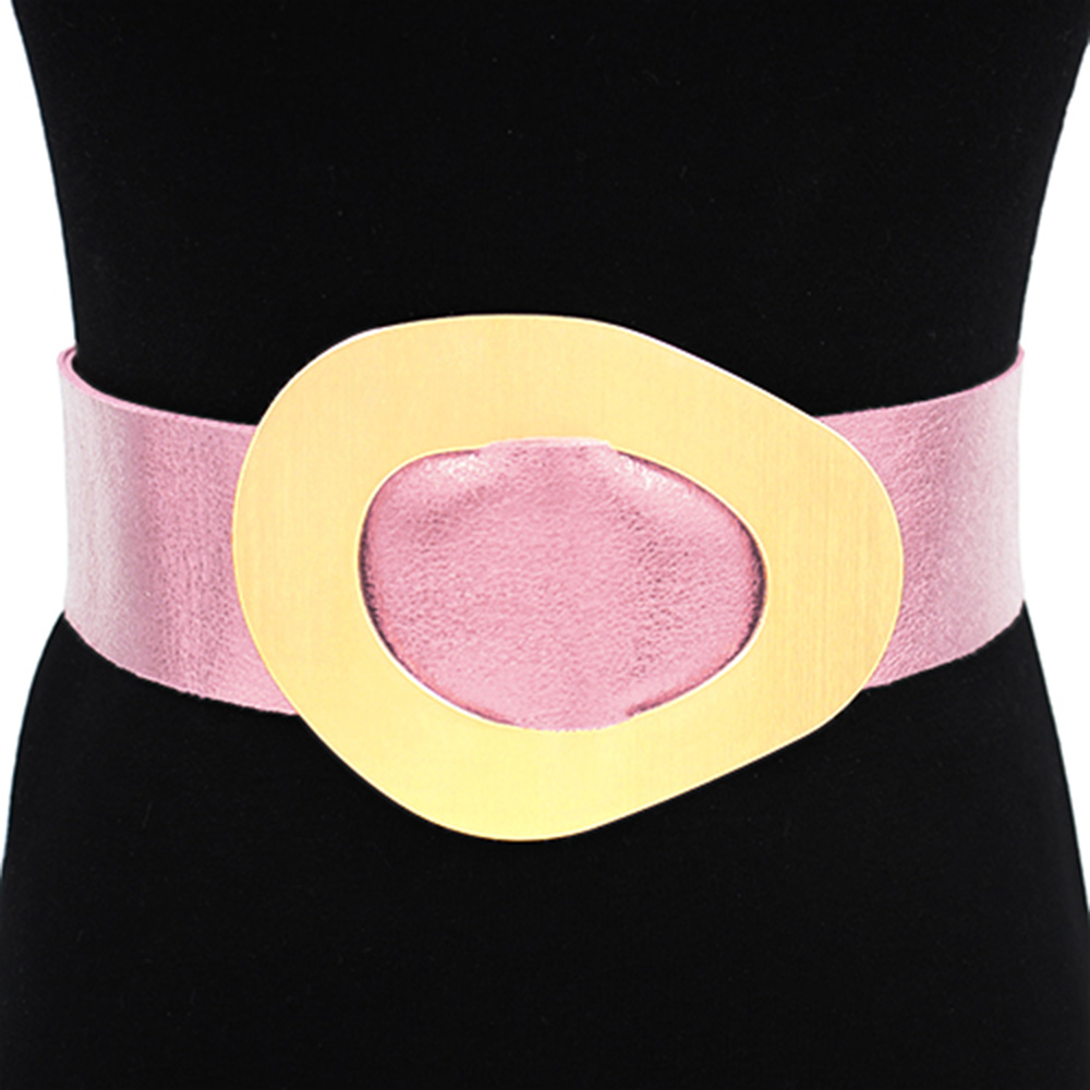 Geometric Brushed Metal Buckle Faux Leather Belt