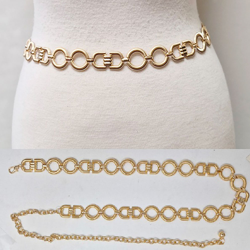 Details • Size : 0.8" H, 28" + 17" L • Elevate your look with this geometric link chain waist belt, designed with bold circular and rectangular links for a statement finish. A versatile piece that pairs effortlessly with dresses or layered outfits, bringing modern edge and timeless elegance to your style. • Lead and Nickel Compliant