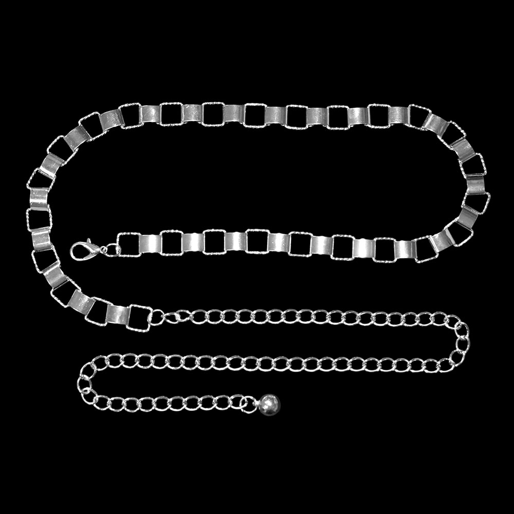 • Enhance your outfit with this chic geometric chain waist belt, designed with square links for a modern touch. Perfect for pairing with dresses or jumpsuits, this versatile accessory defines the waistline and adds an elegant edge to both casual and formal looks, making it a must-have style piece.