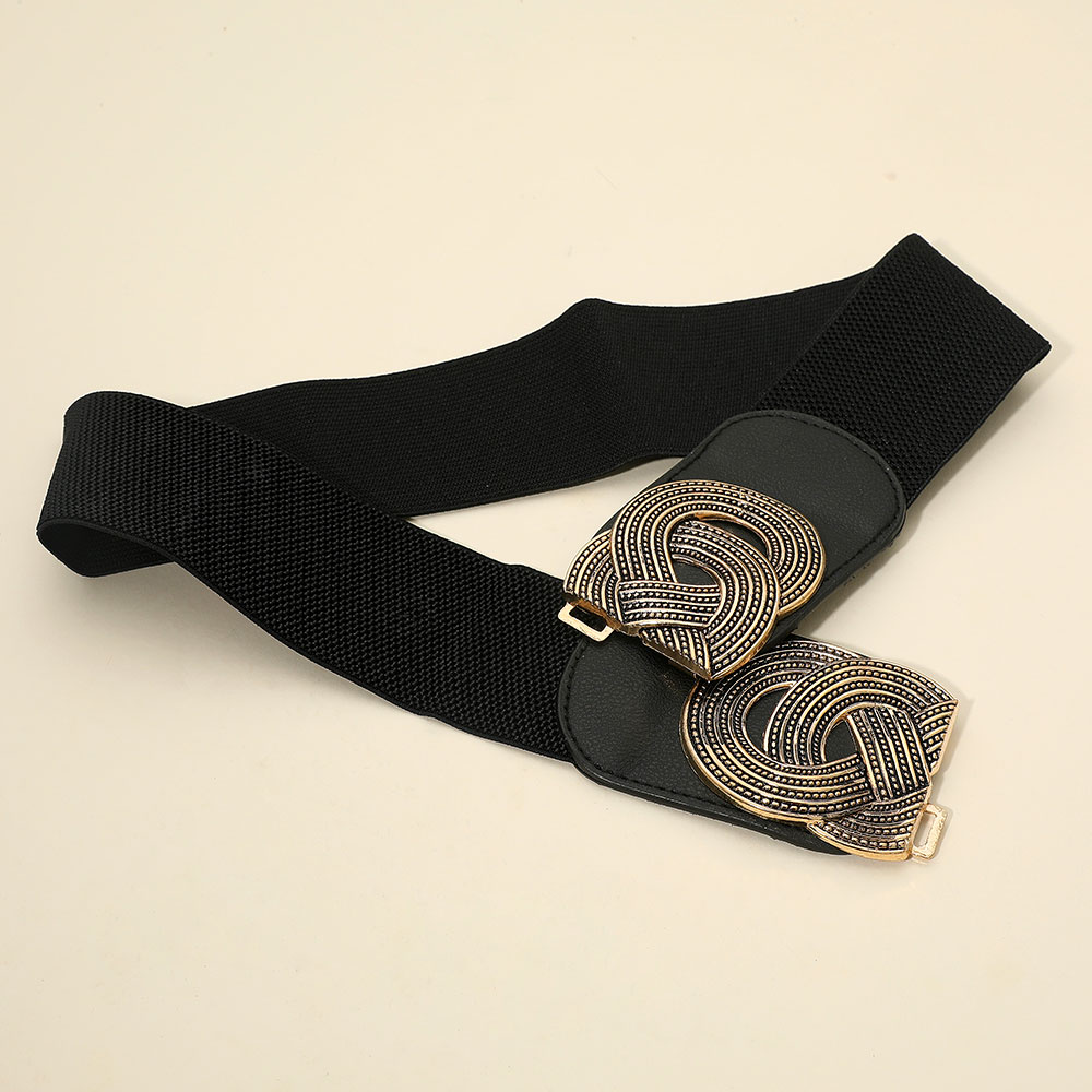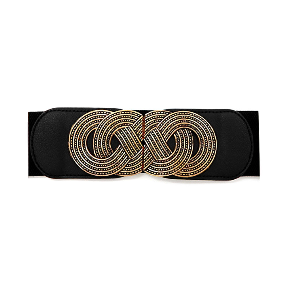 Interlocking Circle Buckle Accent Wide Elastic Waist Belt Interlocking Circle Buckle Accent Wide Elastic Waist Belt Interlocking Circle Buckle Accent Wide Elastic Waist Belt