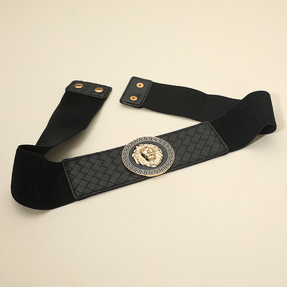 Details • Size : 2.5" H • Approximately : 32" L, Stretchable • Powerful wide statement belt featuring a bold lion head buckle with intricate detailing. Perfect for styling with dresses, blazers, or jumpsuits, this accessory elevates any outfit by adding a touch of strength, confidence, and standout sophistication.