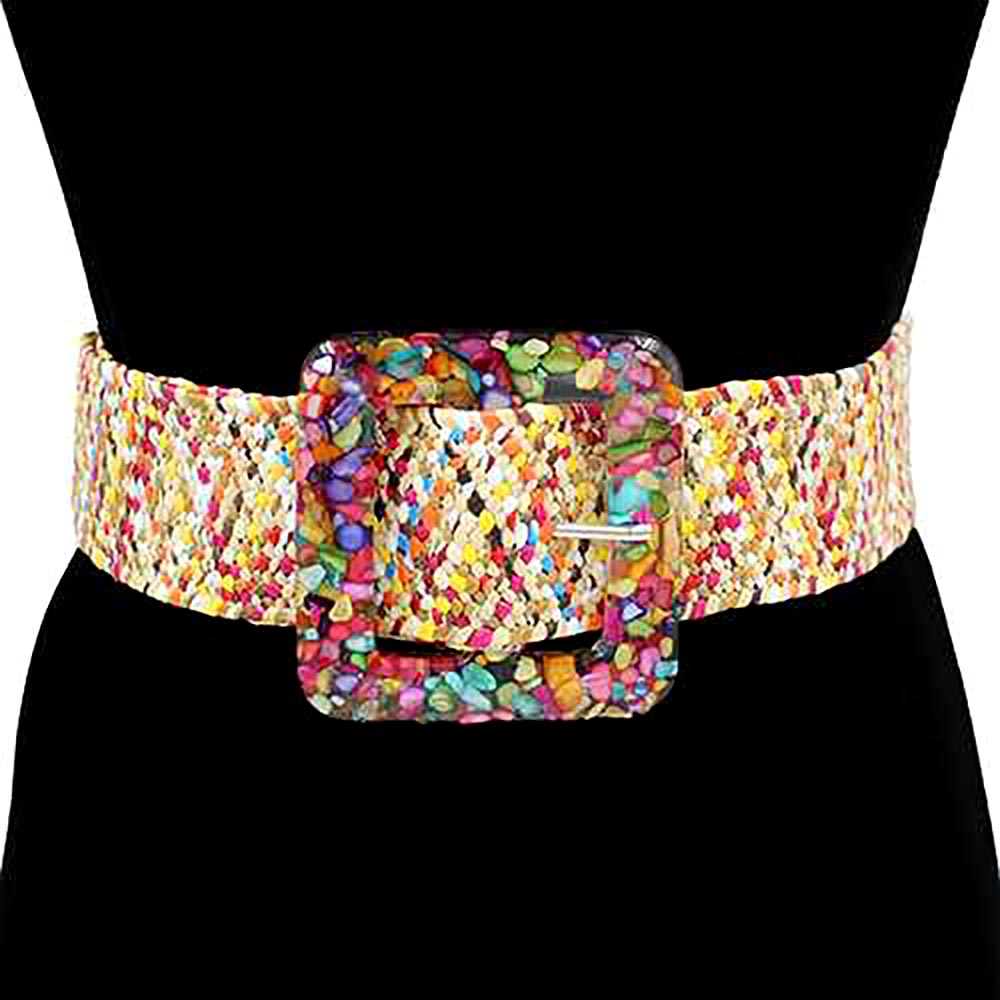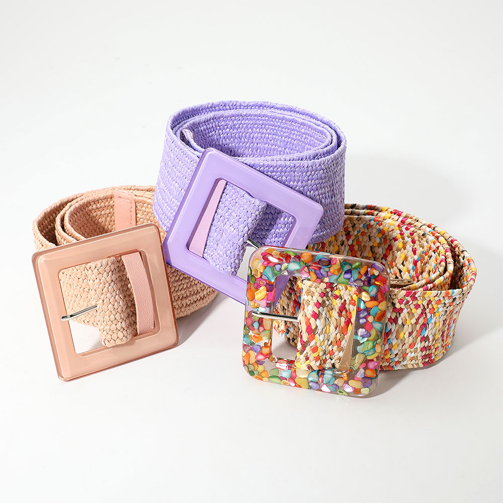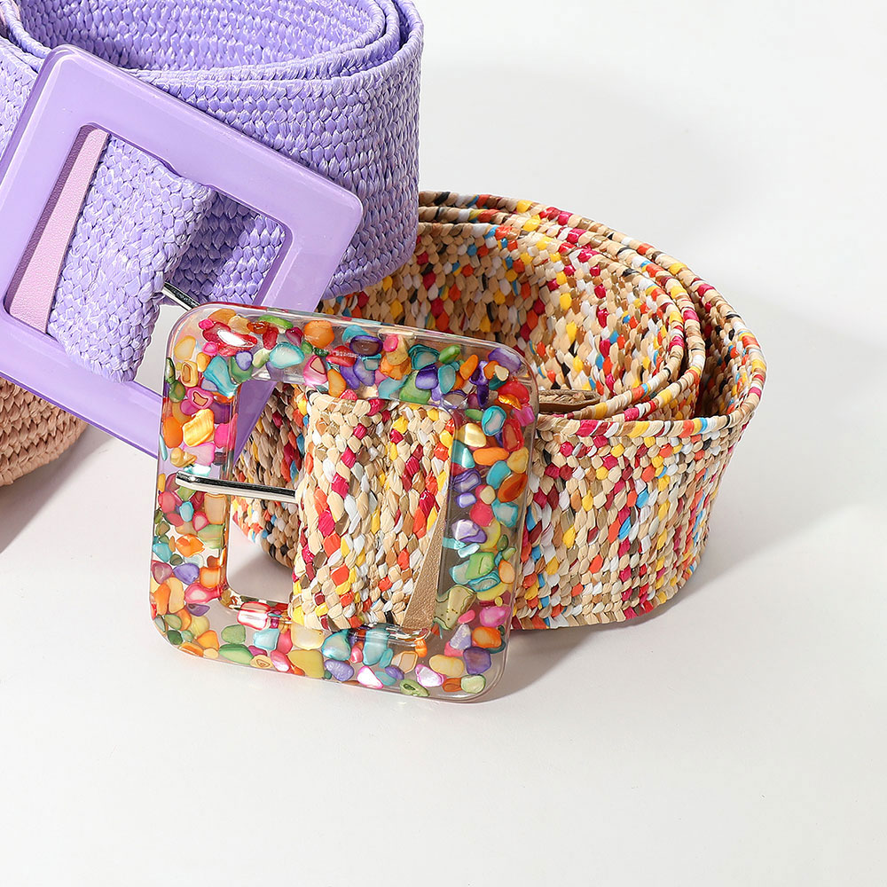 Resin Square Buckle Accent Raffia Adjustable Belt