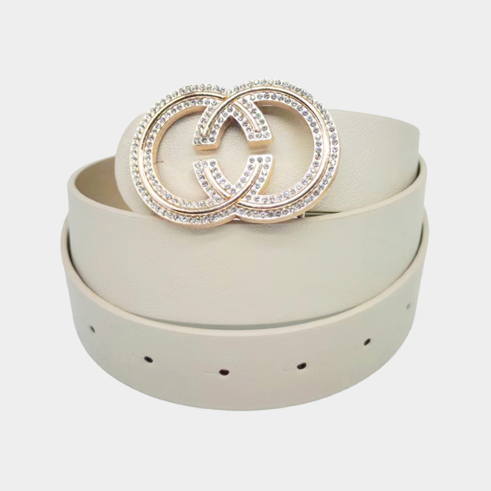 Rhinestone Embellished Buckle Accented Faux Leather Belt