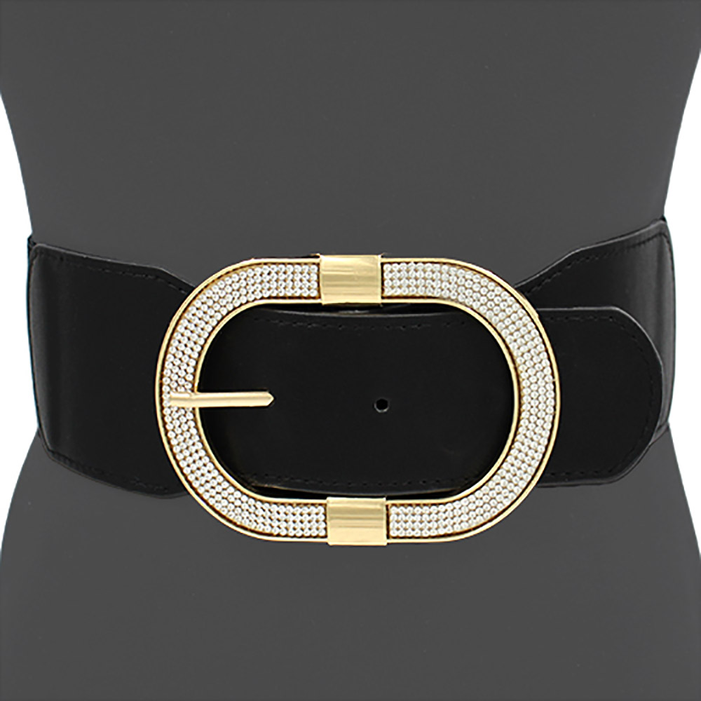 Stone Paved Open Oval Buckle Accented Elastic Belt