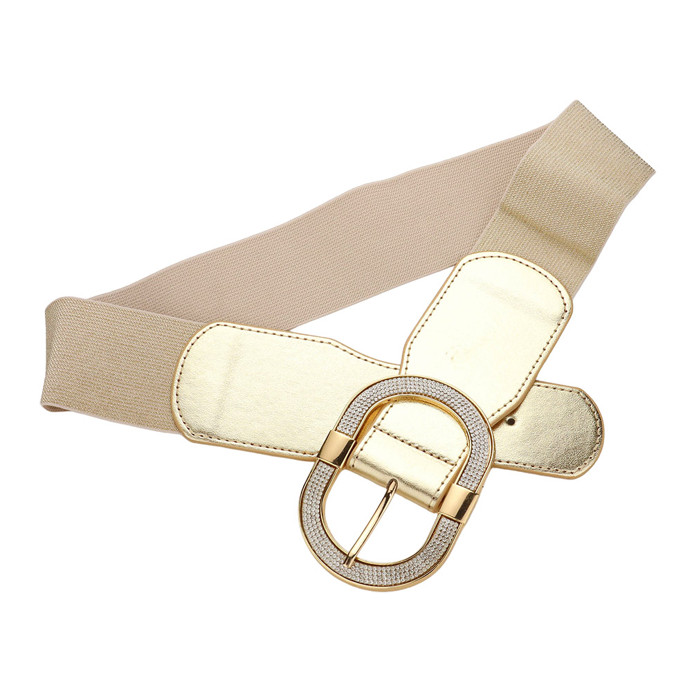 Stone Paved Open Oval Buckle Accented Elastic Belt
