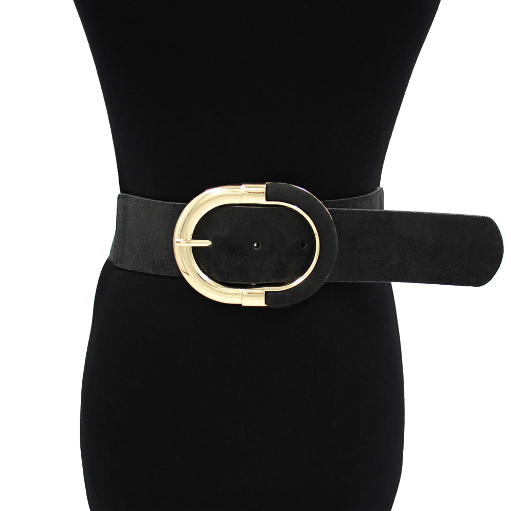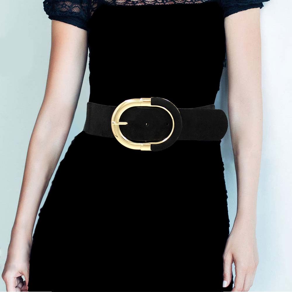Details • Size : 3" H, 41" L • Stretchable • Define your silhouette with this stylish wide waist belt featuring a bold oval buckle. Perfect for cinching dresses, blazers, or tunics, it adds a modern statement to any outfit while ensuring a comfortable, adjustable fit for versatile wear. • Lead and Nickel Compliant
