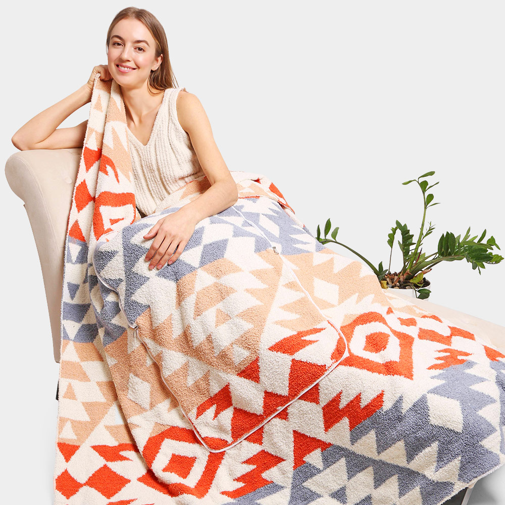 2 IN 1 Reversible Boho Tribal Patterned Blanket / Pillow
