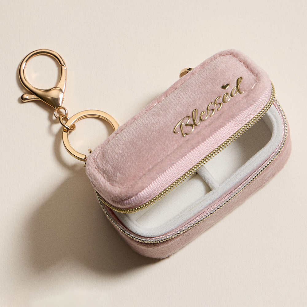 Details • Size : 3" X 1.5" X 1.5" • Zipper closure for secure storage • Polished gold-tone keyring with clasp hardware • Compact storage for rings, earrings & small jewelry • Ideal for travel, everyday use, or thoughtful gifts • Organize your jewelry anywhere with this rectangular travel case keychain. Designed with zipper closure and compartments for rings, earrings, and small accessories, it clips easily to bags or keys. A stylish and practical portable organizer, perfect for travel and thoughtful gifting.