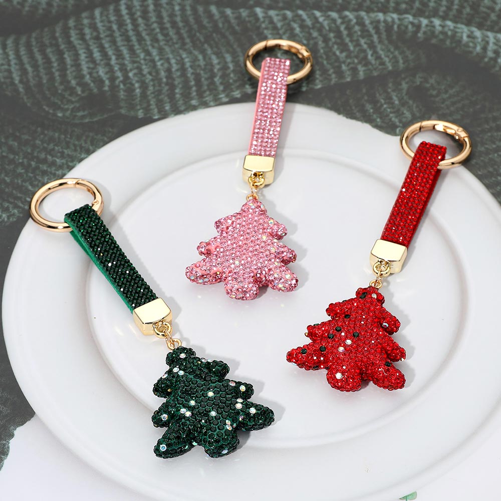 • Festive Christmas tree keychain embellished with sparkling rhinestones and a matching strap for easy attachment. Perfect holiday accessory for keys, handbags, or gift tags. Adds cheerful sparkle to your collection or makes a great seasonal gift for anyone who loves festive charm.