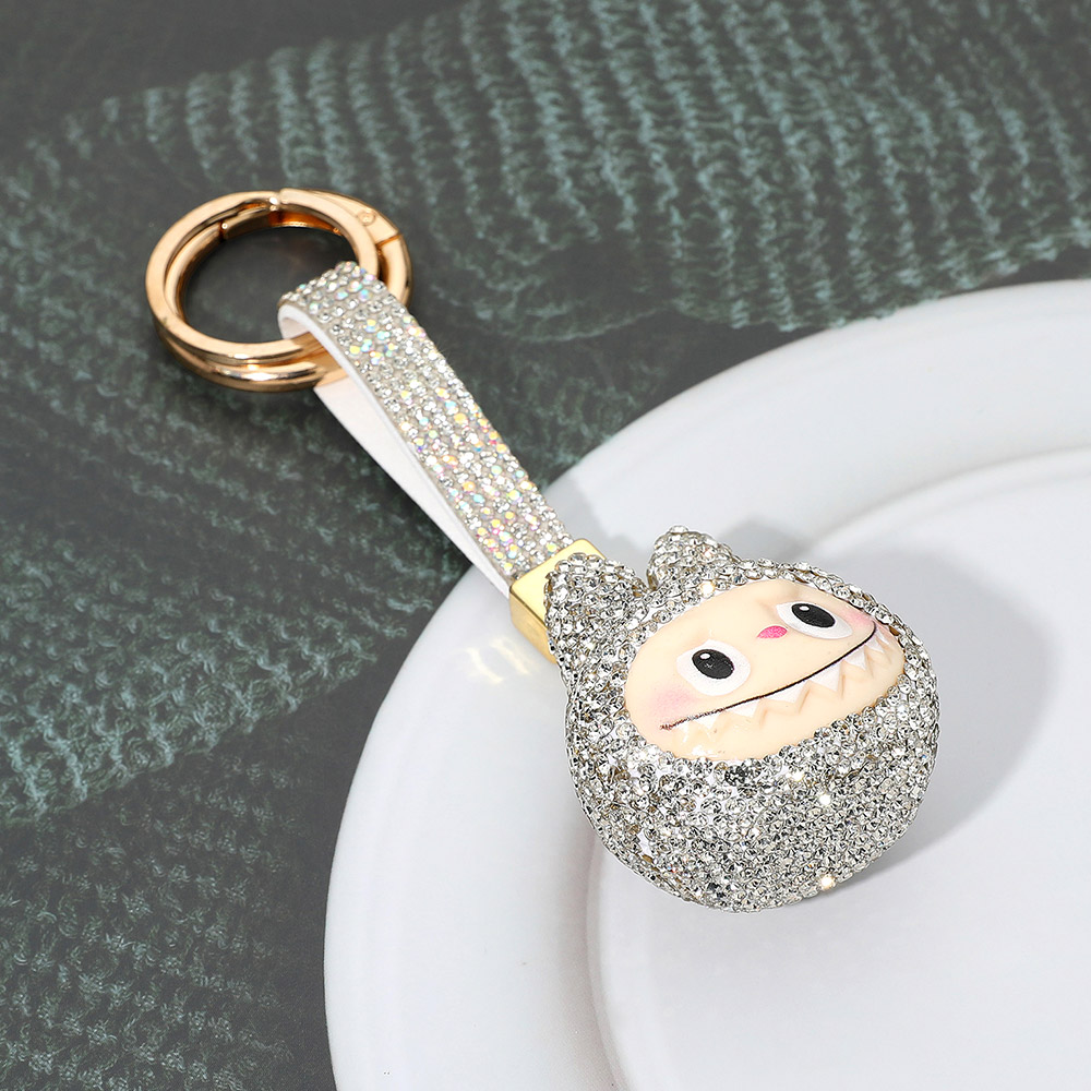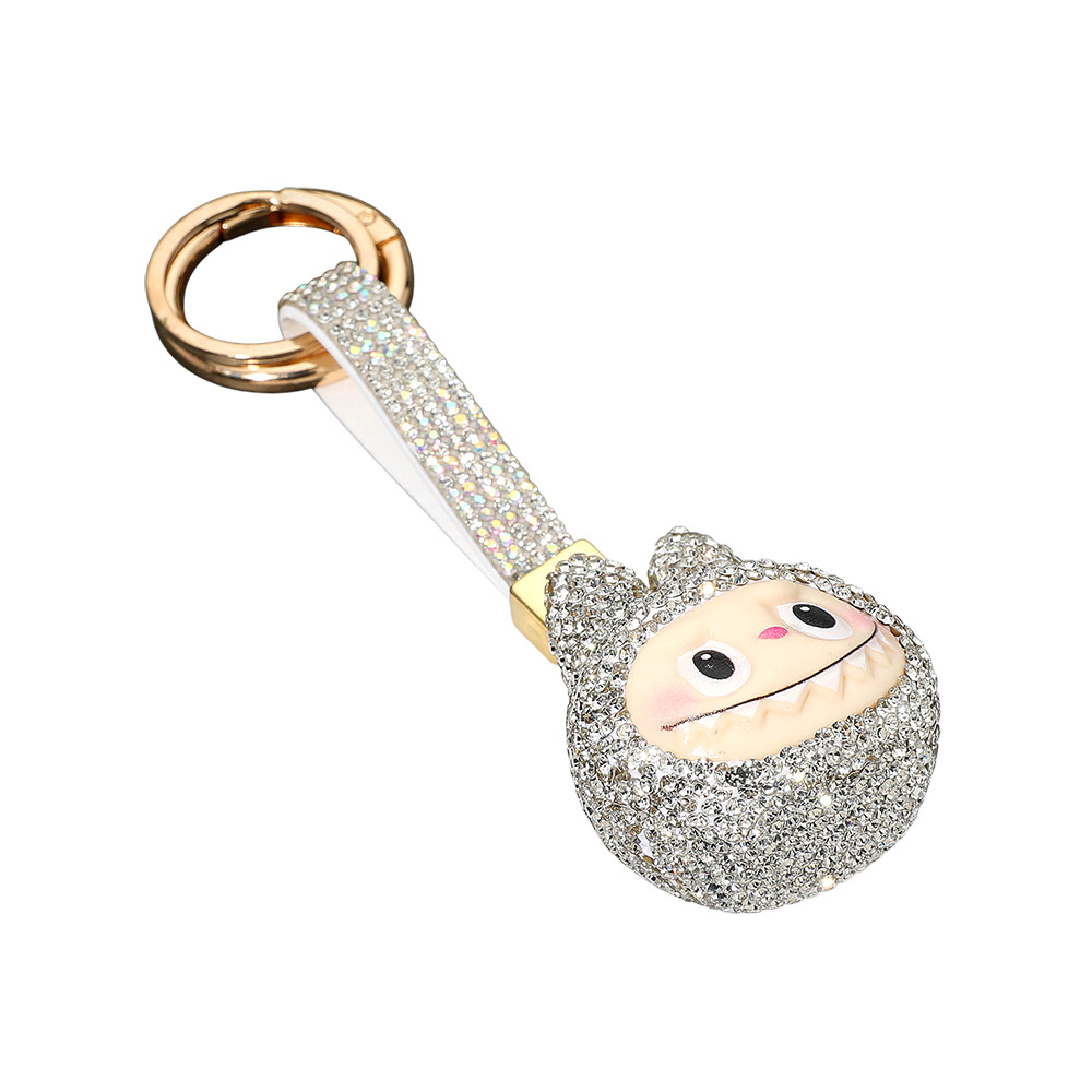 • Adorable character keychain embellished with sparkling rhinestones and a matching wrist strap. Perfect for decorating handbags, backpacks, or car keys. A fun and stylish accessory that adds charm, shine, and personality to your everyday essentials or makes a delightful gift.