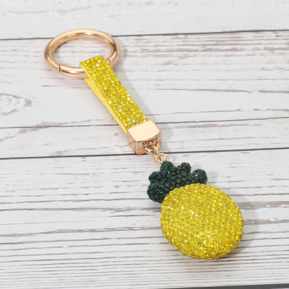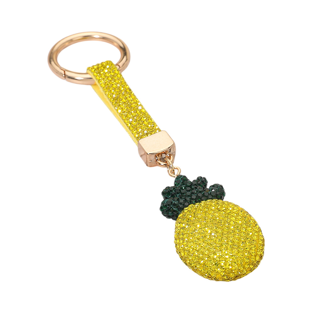 • Fun pineapple keychain adorned with sparkling rhinestones and a matching strap. A bright and stylish accessory for keys, handbags, or backpacks, adding a tropical charm to everyday use.
