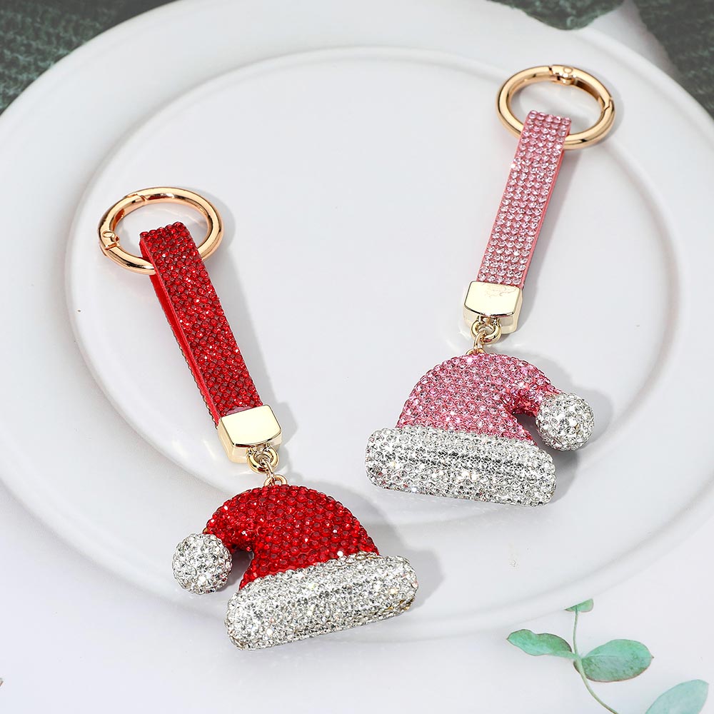 Details • Size : 1.8" X 1.5", 5.4" L • Sparkling Santa hat keychain covered in dazzling rhinestones and paired with a matching strap. A festive and stylish accessory perfect for holiday season flair. Attach it to keys, handbags, or gift bags for a cheerful touch or use it as a cute stocking stuffer idea. • Lead and Nickel Compliant