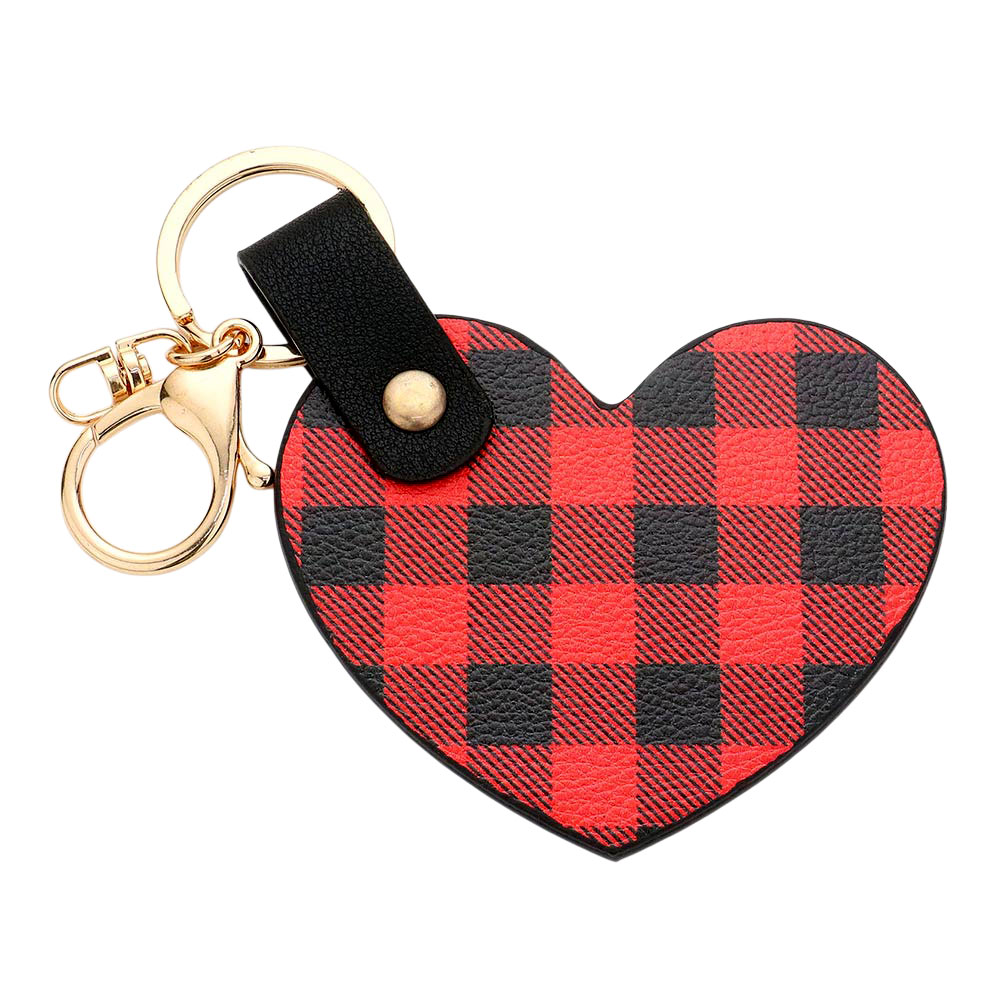 Details • Size : 3.25" X 3.5" • Add charm and function to your accessories with this heart-shaped buffalo plaid leather keychain. Designed with a checkered pattern, sturdy silver keyring, and secure clip, it makes carrying keys stylish and convenient while serving as a thoughtful gift option.