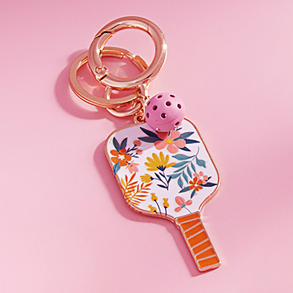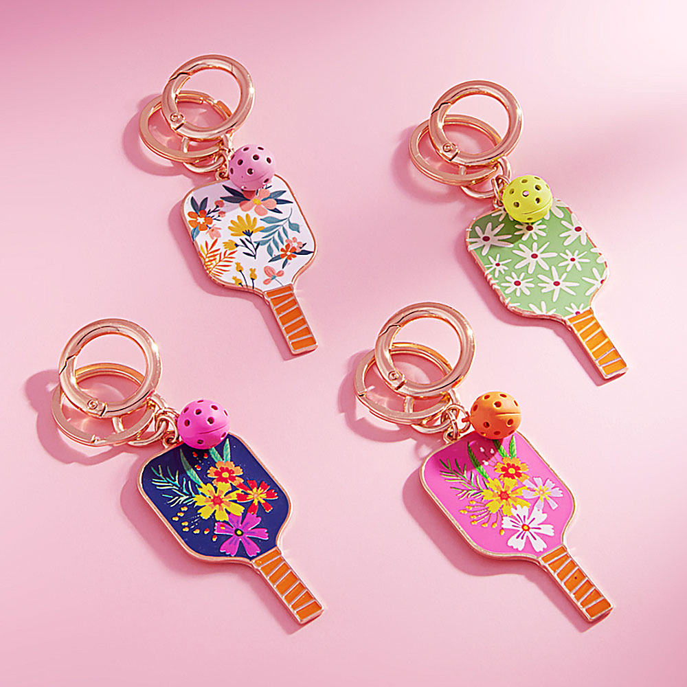 Enamel Floral Pattern Pickleball Paddle Keychain / Bag Charm