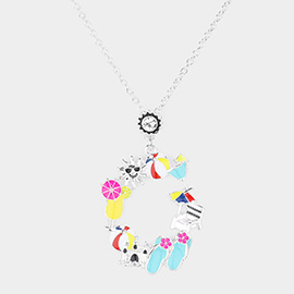 Metal Shell Starfish Flip Flop Dolphin Pearl Charm Station Textured Paperclip Chain Necklace