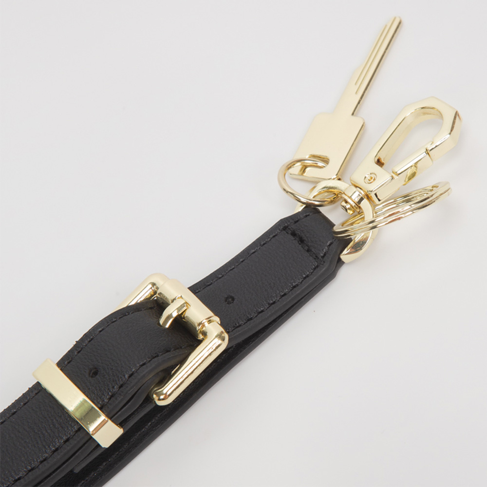 • Keep your essentials close with this adjustable wristlet keychain strap. Featuring a sleek belt-inspired design with a secure buckle and gold-tone accents, it offers both elegance and functionality—perfect for carrying keys or small accessories in effortless style.