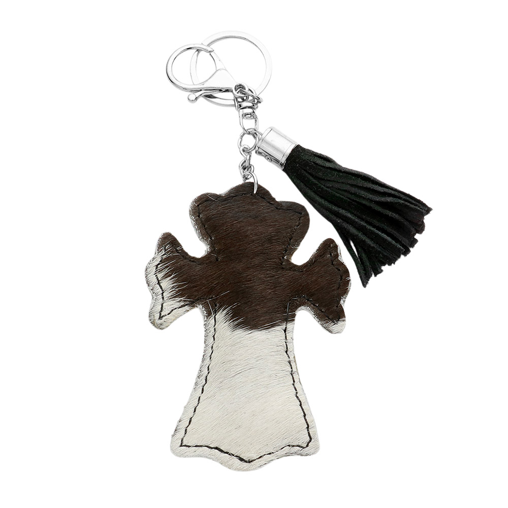 Details • Size : 2.75" X 4", 6.75" L • This cross keychain with tassel combines style and practicality, making it a meaningful accessory for everyday use. Designed with a unique finish and sturdy hardware, it adds a personal touch to your keys, bags, or backpacks while ensuring durability and charm. • Fur Color May Vary