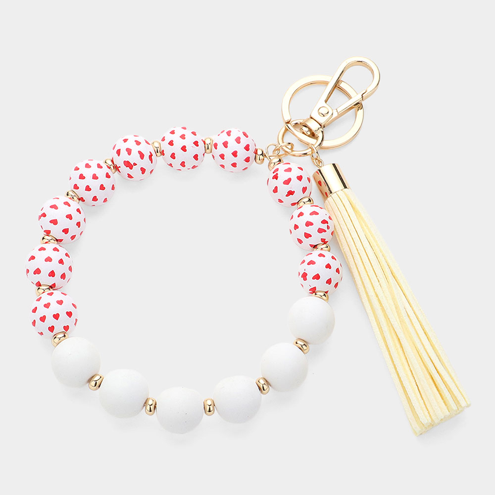 Heart Patterned Beaded Tassel Keychain / Bracelet