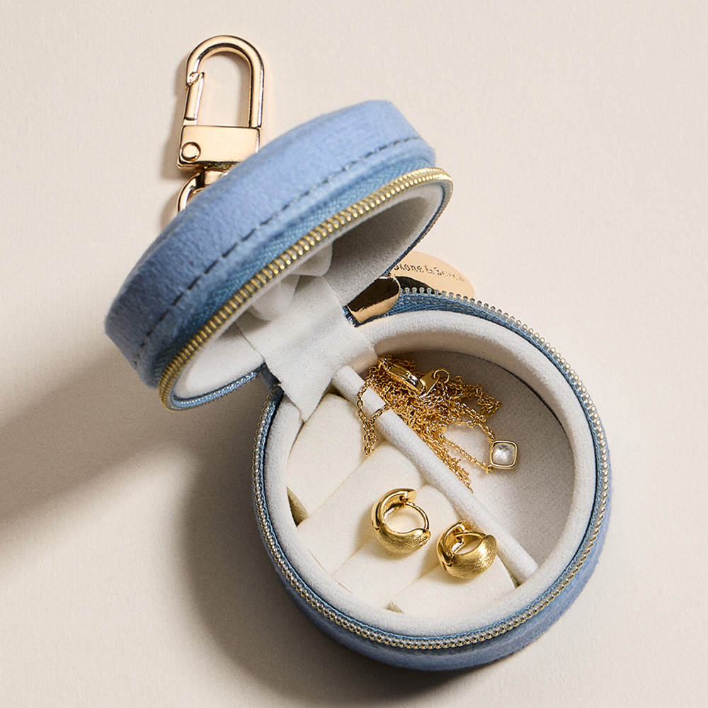 • Keep jewelry safe with this portable round jewelry case featuring zipper closure and keychain hook. Compact and lightweight, it’s perfect for rings, earrings, and small accessories, ideal for travel or daily use. Stylish and practical gift choice for jewelry lovers and frequent travelers.