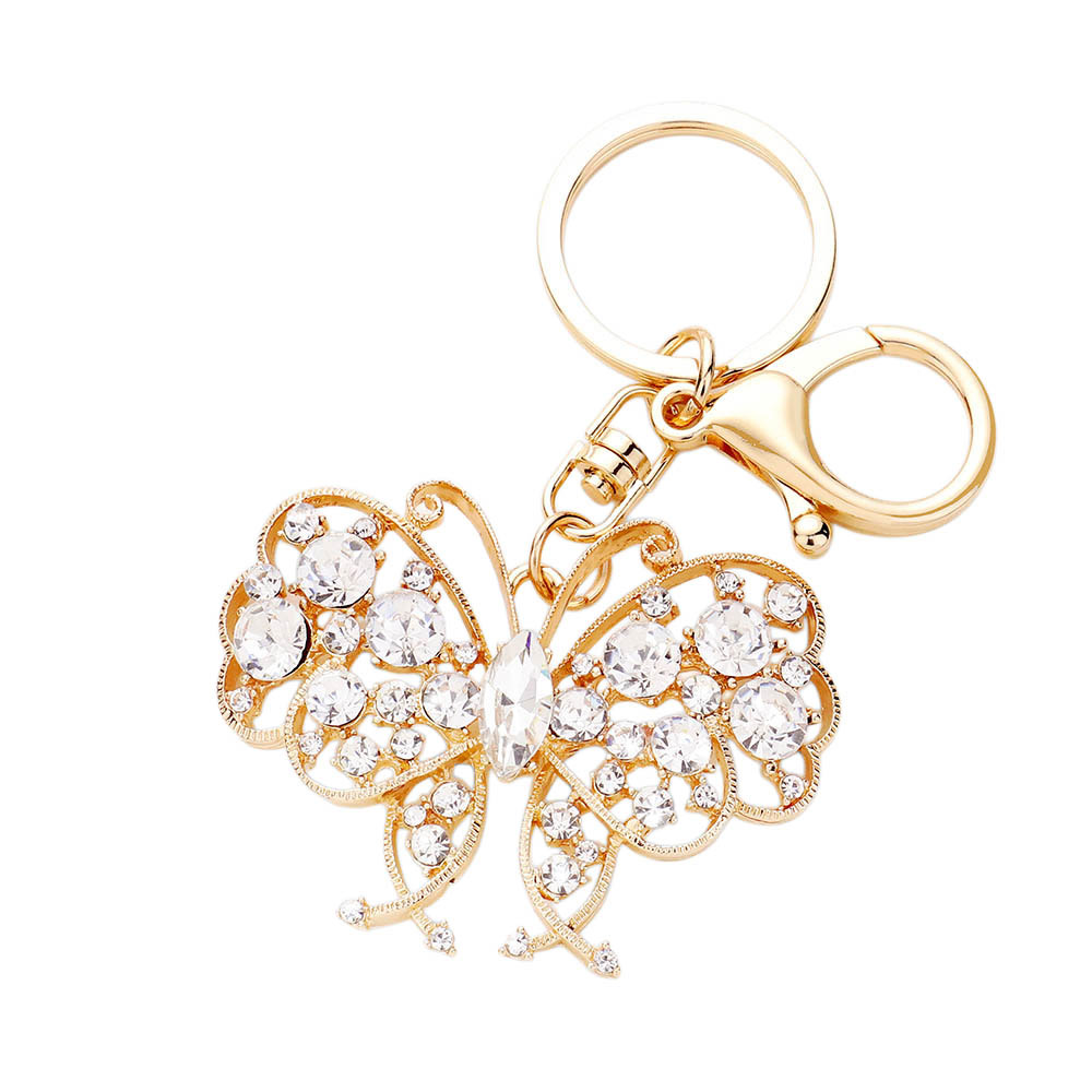 • Add elegance to your accessories with this butterfly keychain featuring sparkling crystal accents. Perfect as a stylish bag charm or key holder, it makes a thoughtful gift or personal treat. Lightweight and eye-catching, this butterfly keychain enhances everyday essentials with charm and shine.
