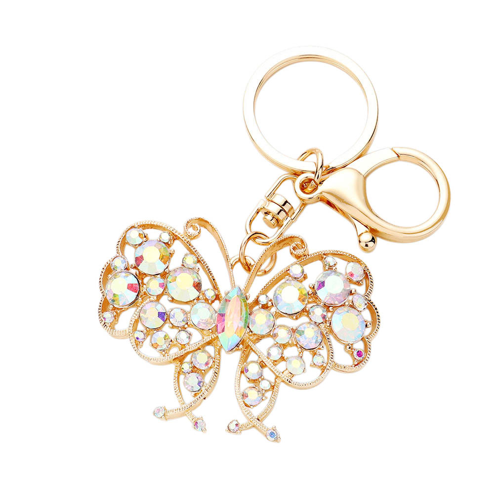 Details • Size : 2.4" x 2", 4" L • Add elegance to your accessories with this butterfly keychain featuring sparkling crystal accents. Perfect as a stylish bag charm or key holder, it makes a thoughtful gift or personal treat. Lightweight and eye-catching, this butterfly keychain enhances everyday essentials with charm and shine. • Lead and Nickel Compliant