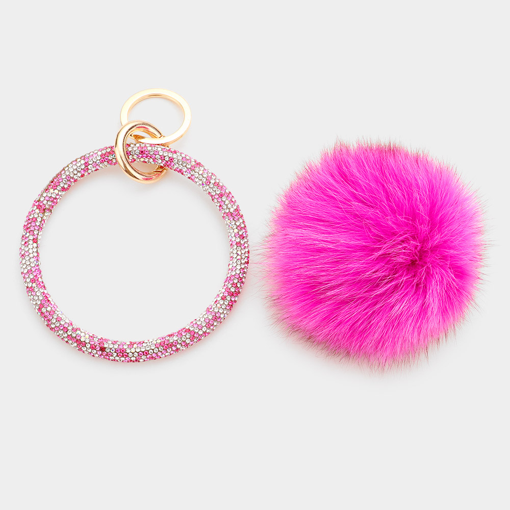 Pom Pom Rhinestone Pave Bangle Keychain / Bracelet