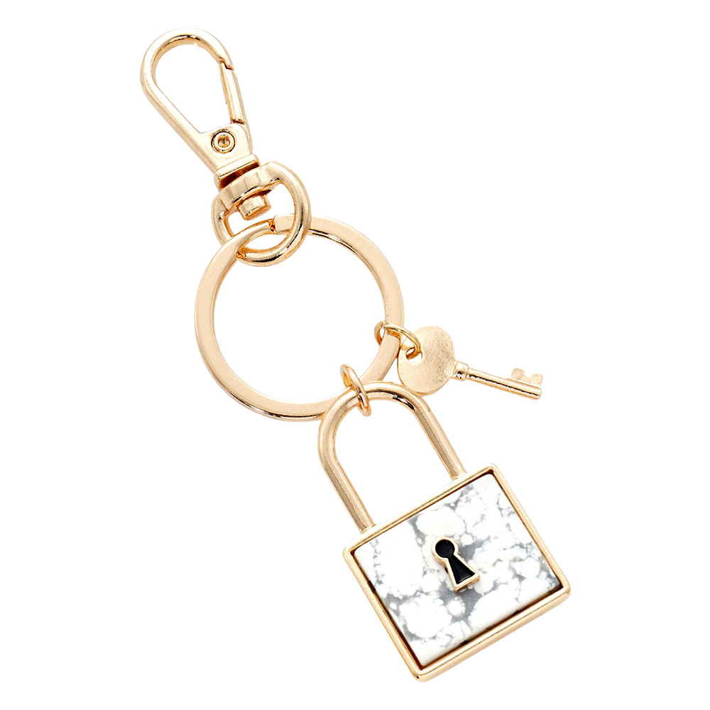 Details • Size : 0.8" X 1.4", 3.5" L • This padlock and key keychain is a trendy accessory designed for everyday use. Featuring a lock charm with key detail, it adds a touch of style while keeping your keys organized and secure. Perfect for handbags, backpacks, or key rings. • Lead and Nickel Compliant