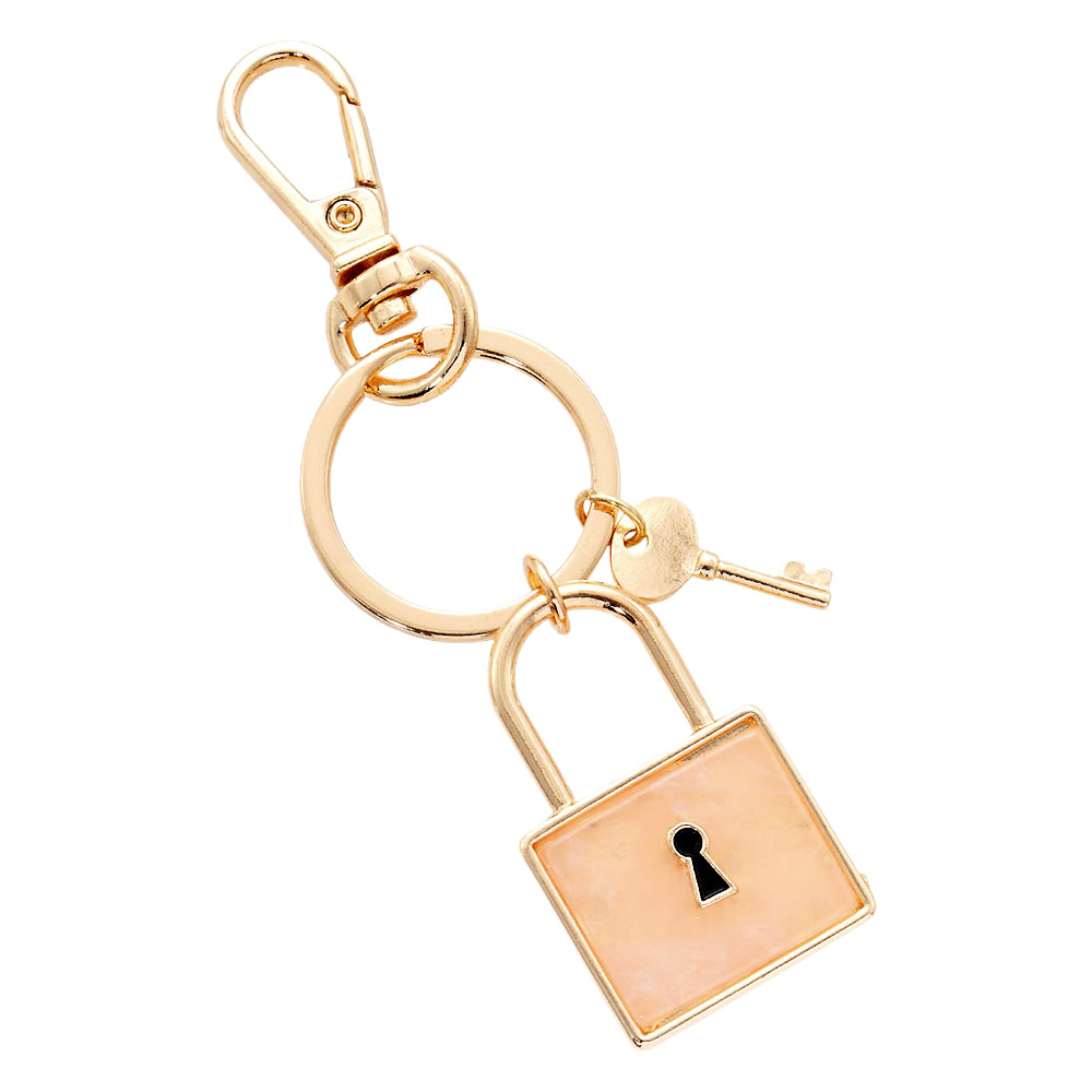 Details • Size : 0.8" X 1.4", 3.5" L • This padlock and key keychain is a trendy accessory designed for everyday use. Featuring a lock charm with key detail, it adds a touch of style while keeping your keys organized and secure. Perfect for handbags, backpacks, or key rings. • Lead and Nickel Compliant