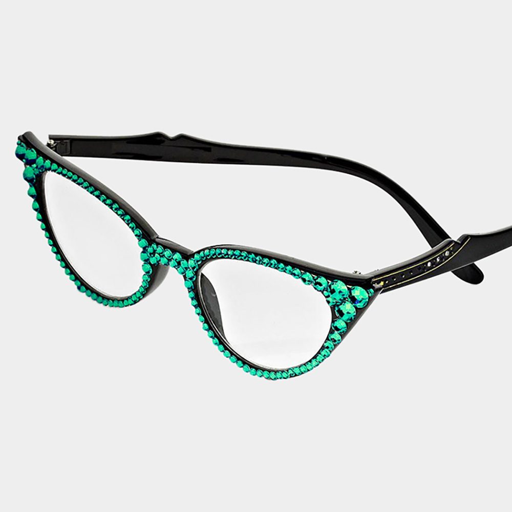 • Bold cat-eye glasses adorned with shimmering rhinestones for a glamorous statement look. Perfect for parties, costumes, themed events, or adding sparkle to everyday style, these frames bring vintage flair with a modern twist.