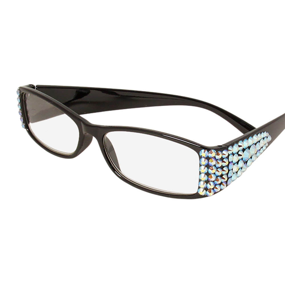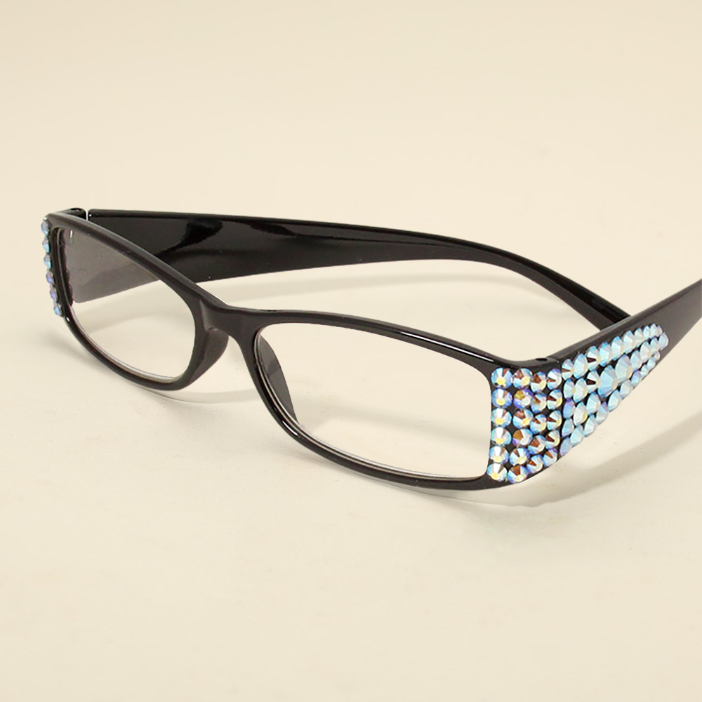 • Stylish reading glasses designed with sparkling embellishments along the frames. Offering both function and flair, they bring a touch of glamour to everyday eyewear while ensuring comfort and clarity for daily use.