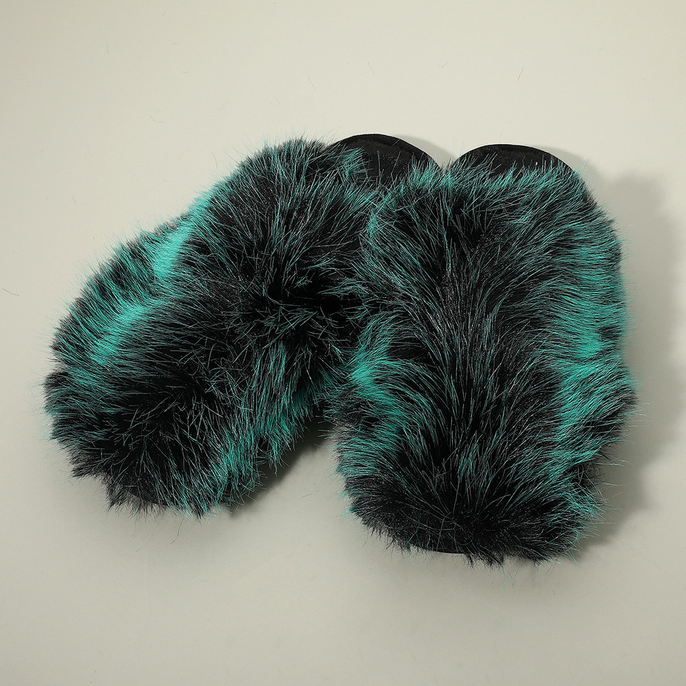 Fluffy Faux Fox Fur Indoor Floor Slippers