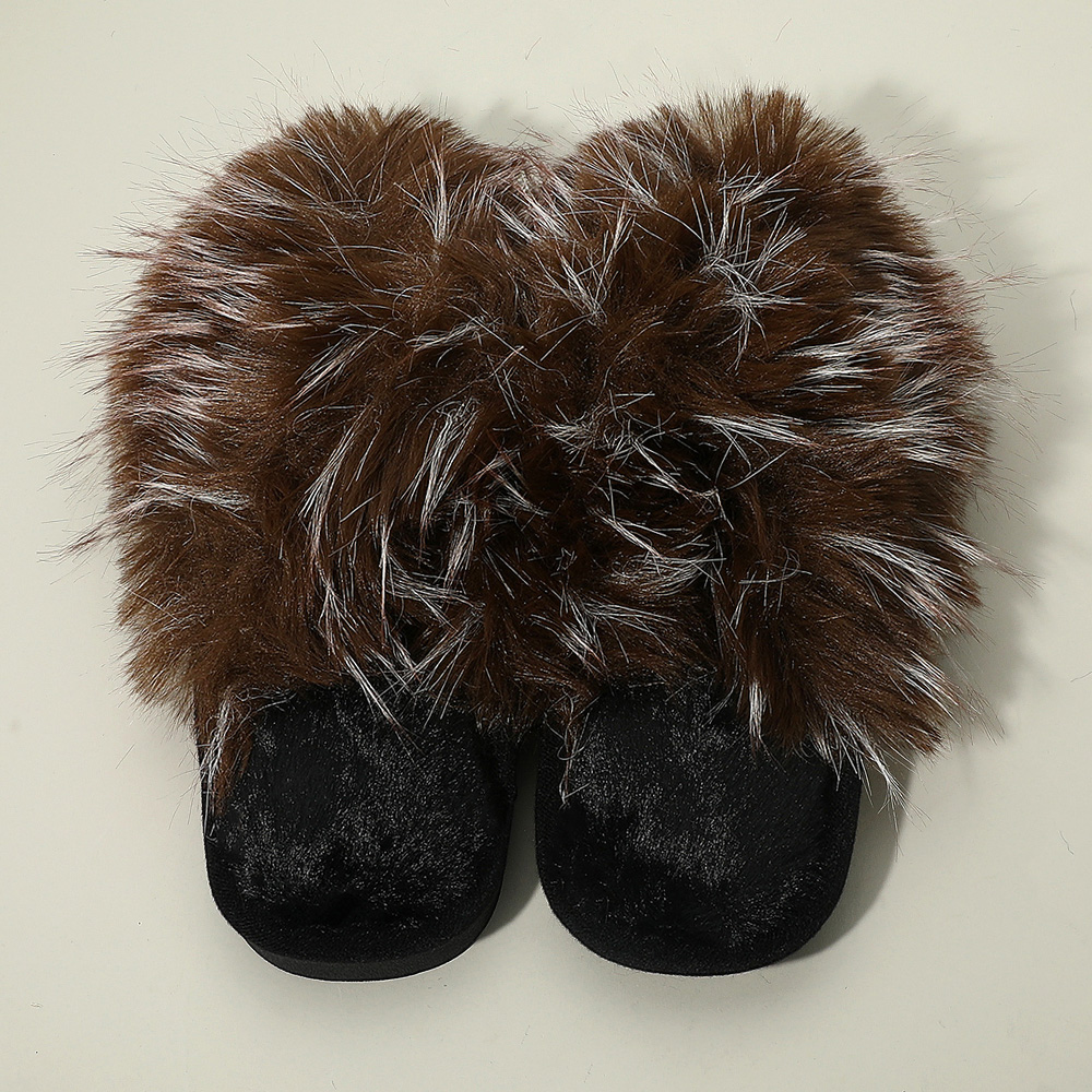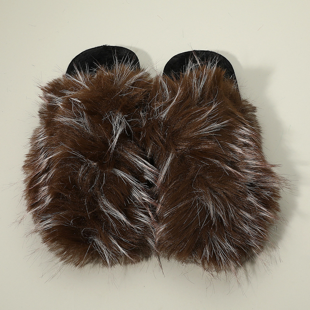 Details • Size : S/M/L/XL • Material : 100% Faux Raccoon Fur • Step into comfort with these cozy faux fur slippers featuring a plush raccoon-inspired fluffy trim. Designed for warmth and style, they’re perfect for lounging at home or adding a touch of playful luxury to your casual wear. Available in multiple sizes for the perfect fit.