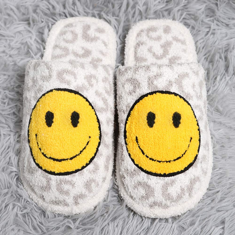 Smile Accented Leopard Patterned Soft Home Indoor Floor Slippers