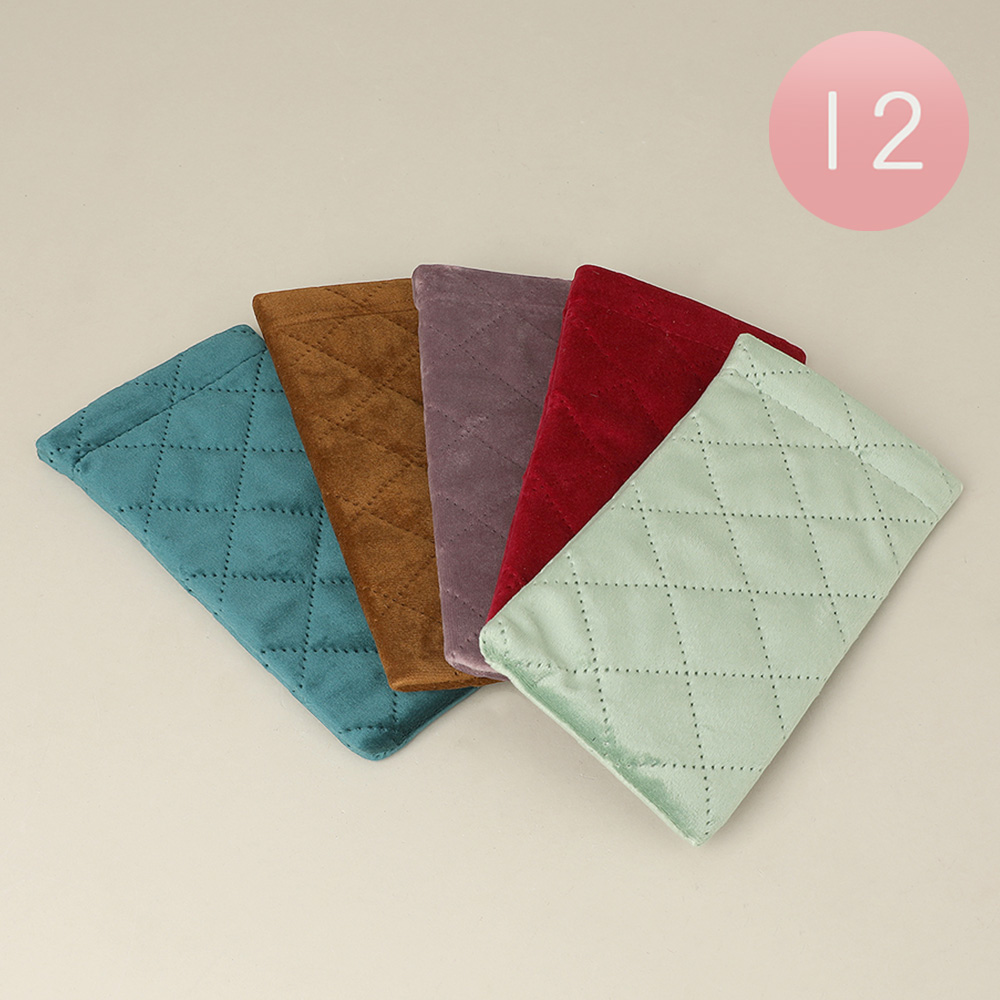 12PCS - Quilted Velvet Flat Sunglasses Case