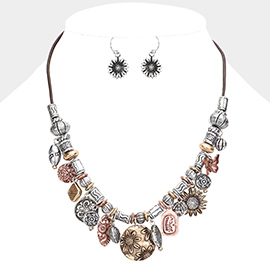 Teardrop Stone Accented Marquise Round Stone Embellished Chunky Collar Evening Necklace