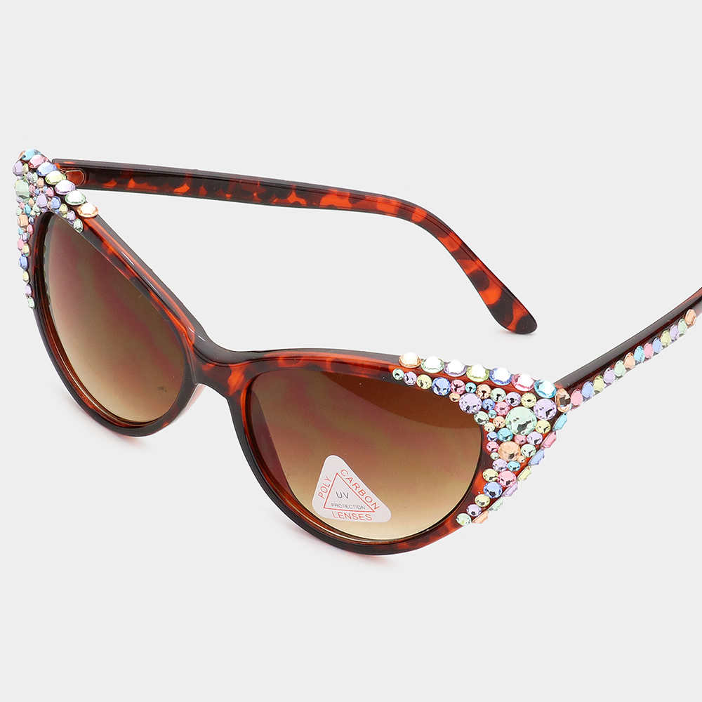 Bubbly Crystal Leopard Cat Eye Sunglasses