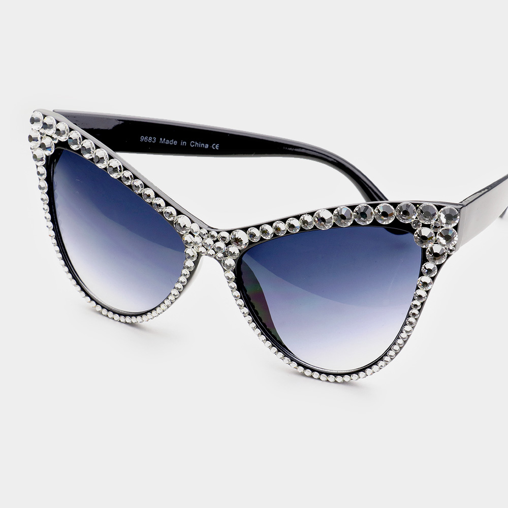 Crystal Embellished Detail Cat Eye Sunglasses
