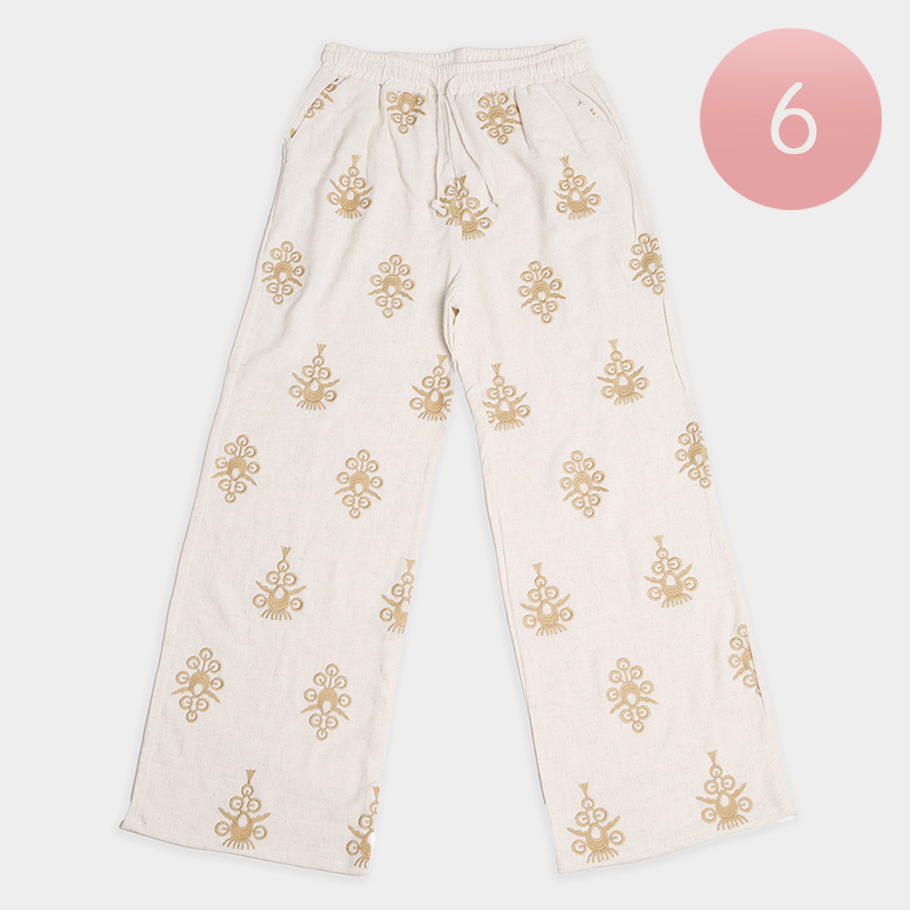 6PCS - Embroidered Linen Wide Leg Pants