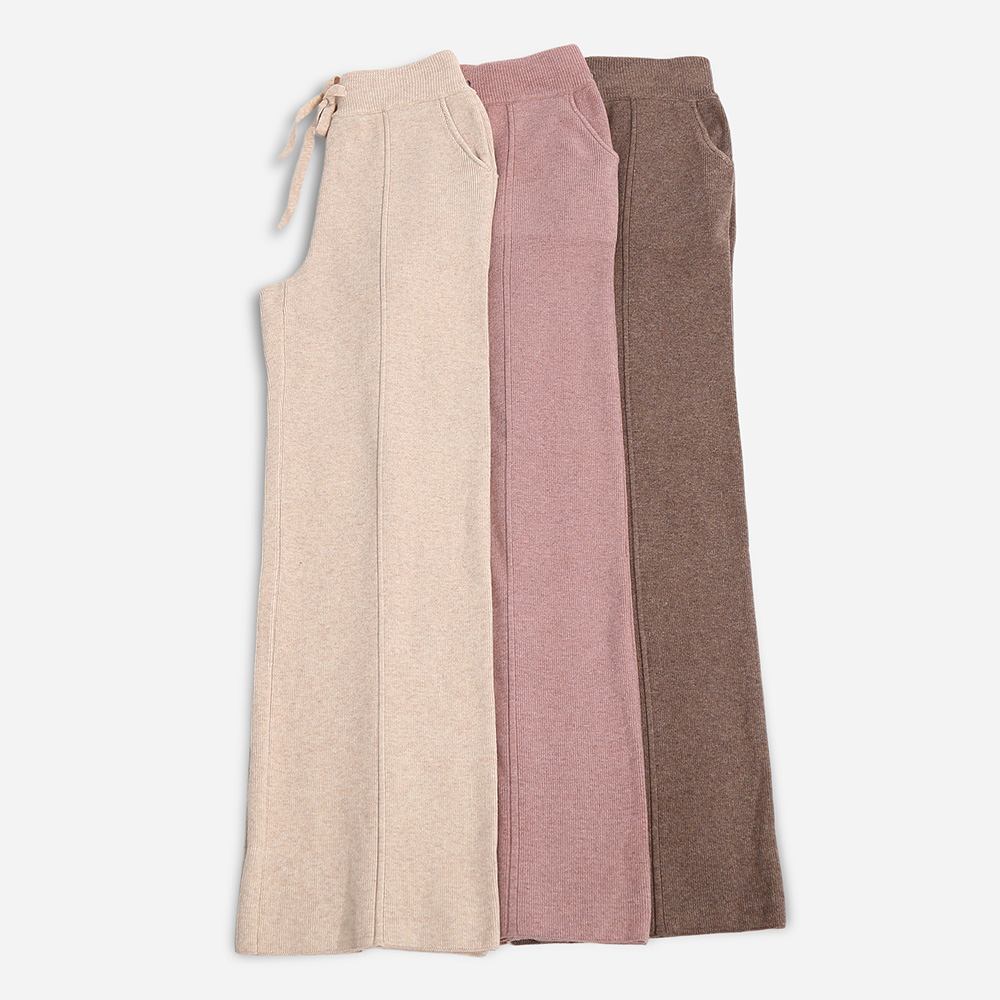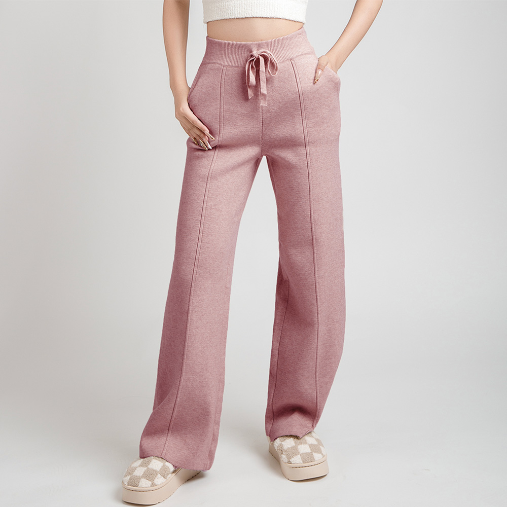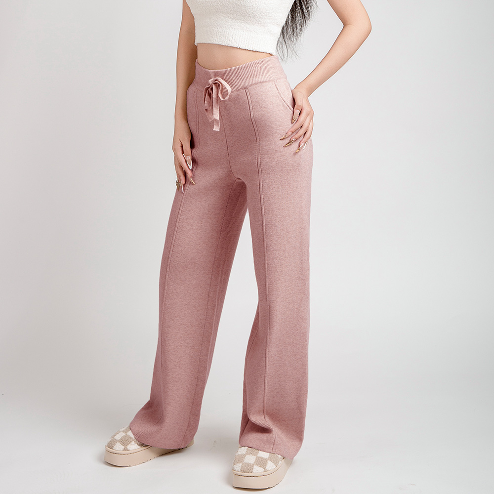 Details • Size : One Size • Material : 65% Polyester, 35% Acrylic • Features : Adjustable drawstring, elastic waistband and front pockets • Care : Machine wash on the cold and gentle cycle, do not bleach, lay flat to dry or tumble dry on low, iron or steam on low, do not dry clean • Soft knit lounge pants featuring a relaxed wide-leg fit and adjustable drawstring waist for maximum comfort and style. These cozy pants are perfect for casual wear, travel, lounging at home, or pairing with your favorite tops for an effortless everyday outfit. Designed with subtle seam detailing and practical pockets, they offer both fashion and function. Ideal for creating laid-back yet polished looks you can enjoy all season long.